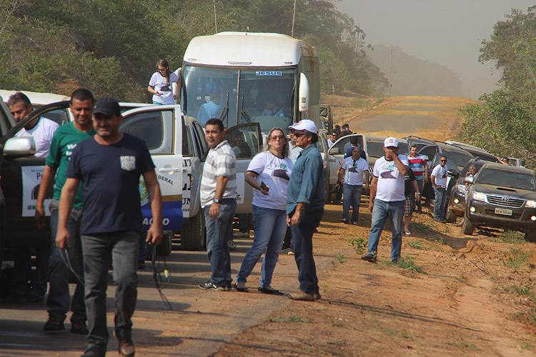 Após o pernoite em Humaitá, onde o trecho de 190 quilômetros ligando o município a Porto Velho está asfaltado, a caravana seguiu até Realidade, a 84 quilômetros, a primeira cidade onde a 319 apresenta buracos e pontes necessitando de reforma. O chamado “meio” da rodovia não pôde ter a continuidade das obras de recuperação porque o Ibama embargou o trecho, alegando possível degradação ambiental na terraplanagem e elevação da estrada em áreas de proteção ao longo da BR. “Estamos viajando através da 319 para provar que não está havendo agressão ao meio ambiente. O DNIT está recuperando uma estrada que já existia. Nada foi criado, apenas recuperado”, disse o senador Acir Gurgacz, que idealizou a caravana. Ele acredita que nesta semana o Ibama retire os embargos após a comprovação documental de que as obras estão dentro da normalidade. “Foram gastos mais de R$ 100 milhões apenas em estudos nesta rodovia”, acrescentou o parlamentar.