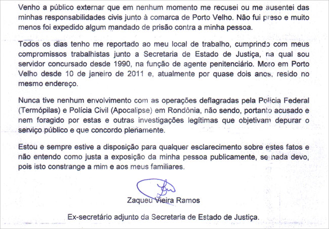 Nota de Esclarecimento Zaqueu Vieira Ramos